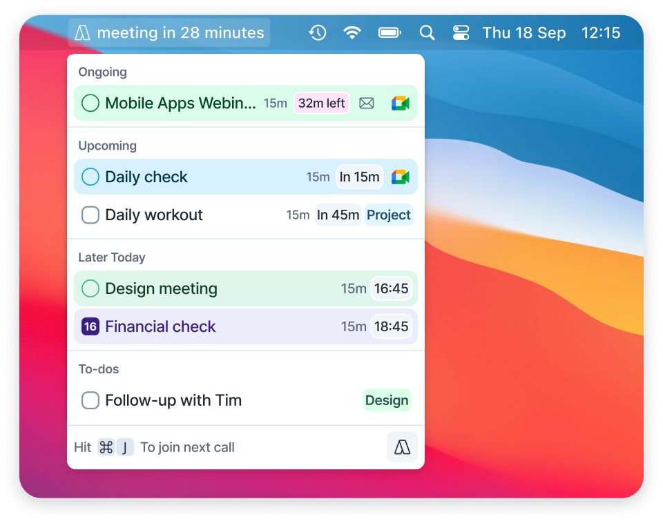 For example, if someone asks about your availability for the day during a meeting, you can rapidly open the Menu bar and check if there are any free spots in your schedule!