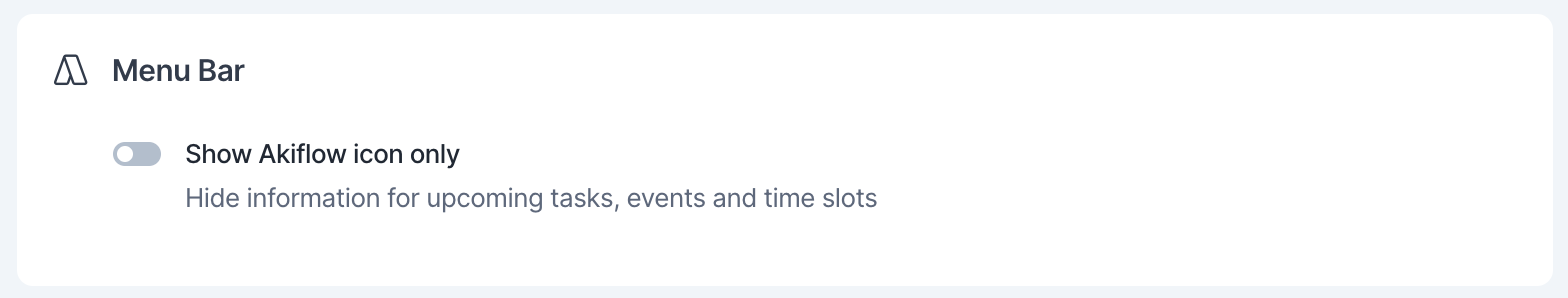 Hide the Menu bar and only show the Akiflow icon in Settings → General.