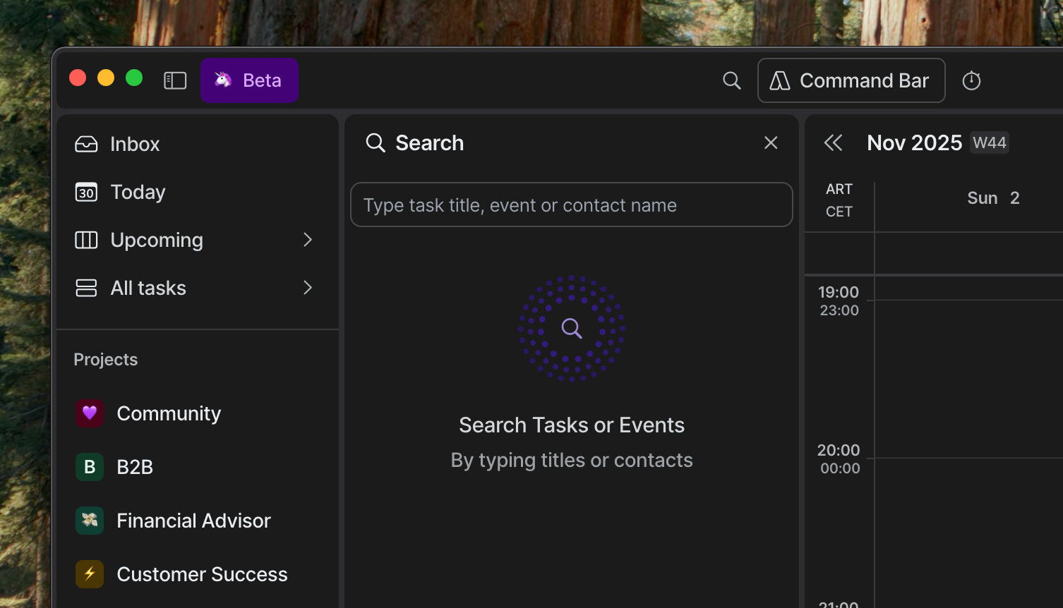 Click on the magnifying glass icon in the upper section of your Akiflow App