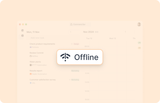 The desktop app provides a more powerful, seamless and efficient experience compared to the web browser. You can access shortcut-driven workflows that are only available on the desktop app, on top of the main features of Akiflow.